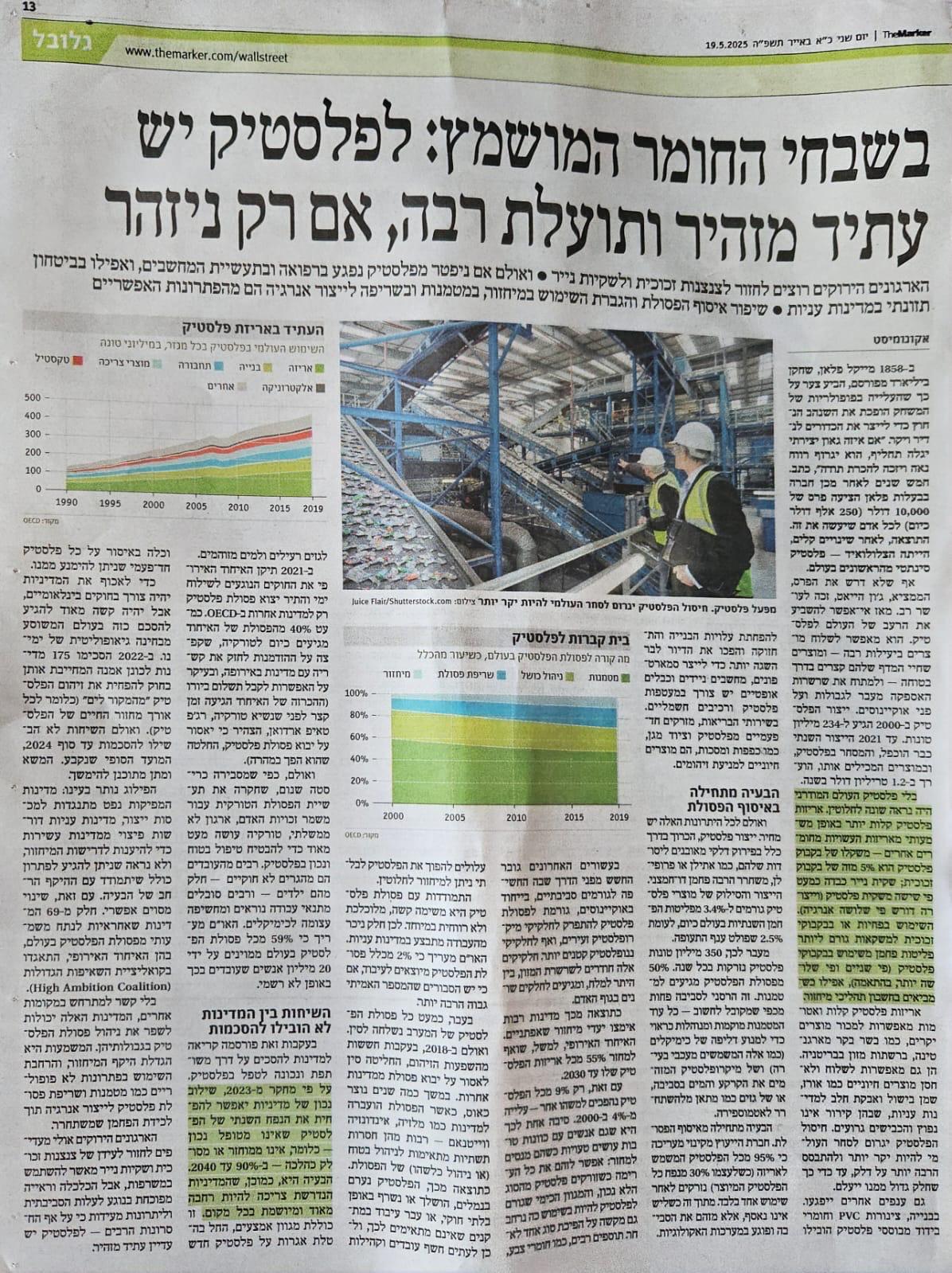 - מערך האיסוף והמחזור של אריזות פלסטיק מסוג PET (נקודות האיסוף שכולנו מכירים) הוא מערך המחזור הגדול והמשמעותי ביותר בארץ.