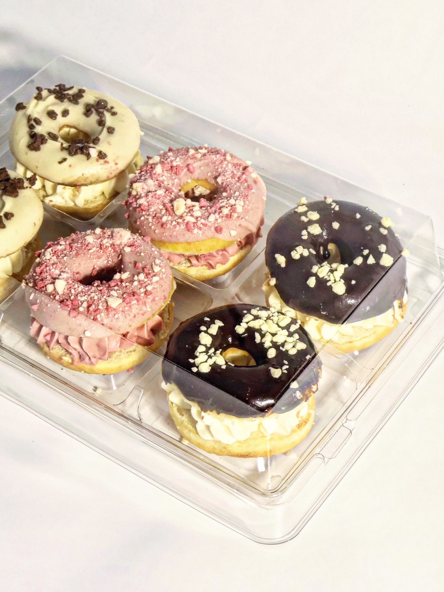 המארז משמש גם ל- 6 סופגניות, לקינוחים ולמאפים שונים (ראה תמונה למטה) – כאן ניתן להשתמש במכסה גבוה יותר…